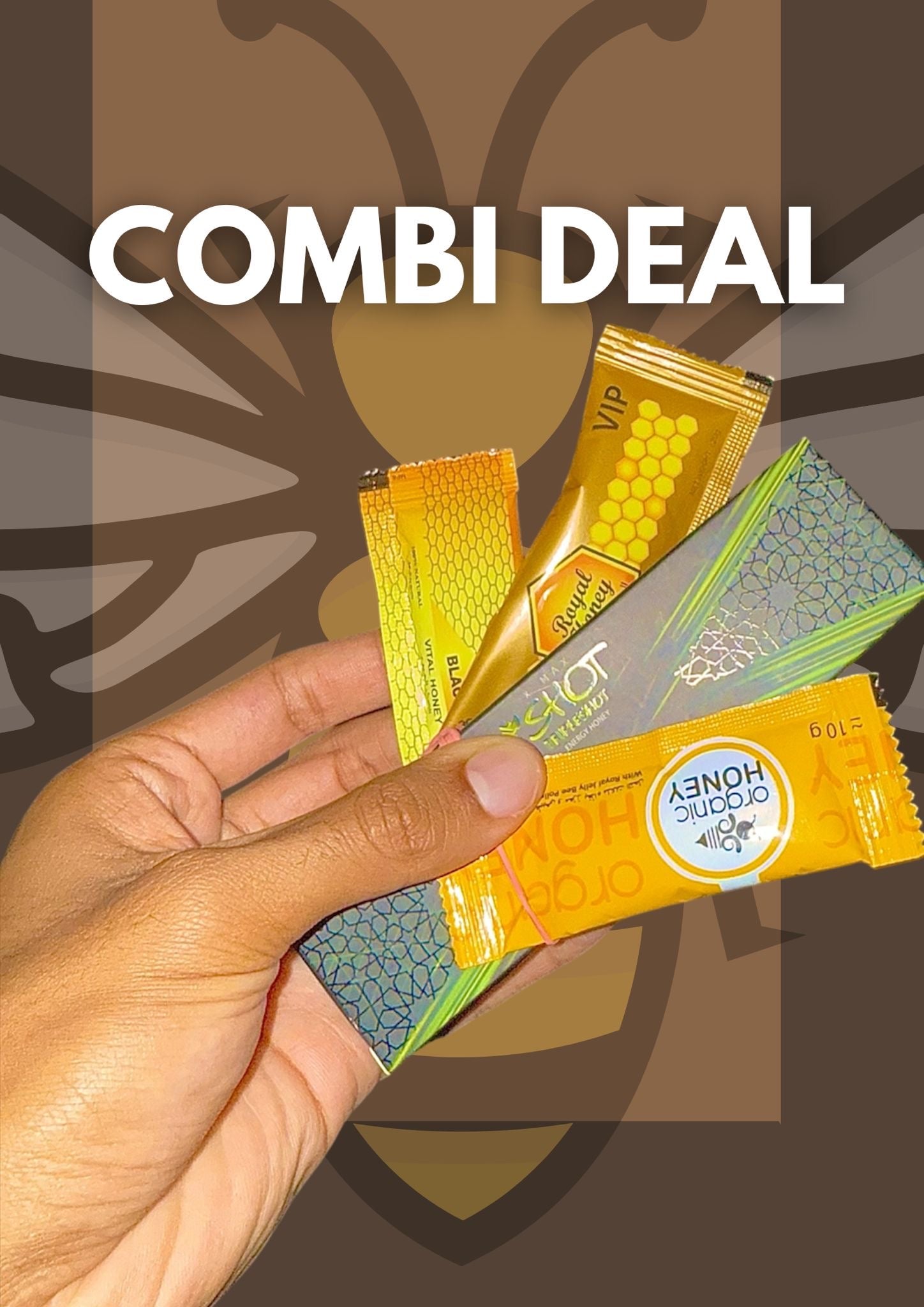 Onze ''COMBI PACK'' bevatten 4 soorten packs. Royal Honey VIP Organic Honey, X-SHOT en Black Horse Special Edition.